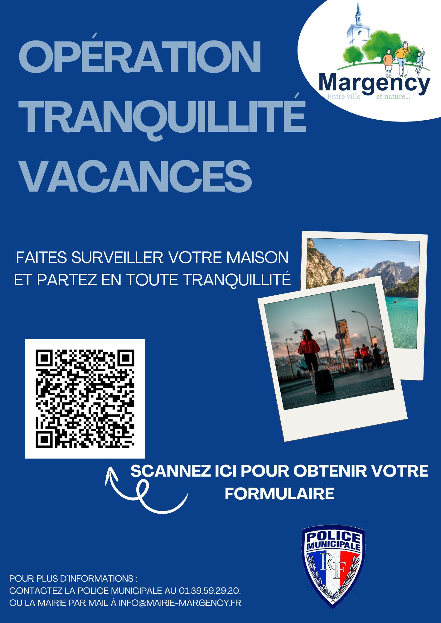 Opération Tranquillité Vacances Les vacances approchent, pensez à la sécurité de votre domicile.